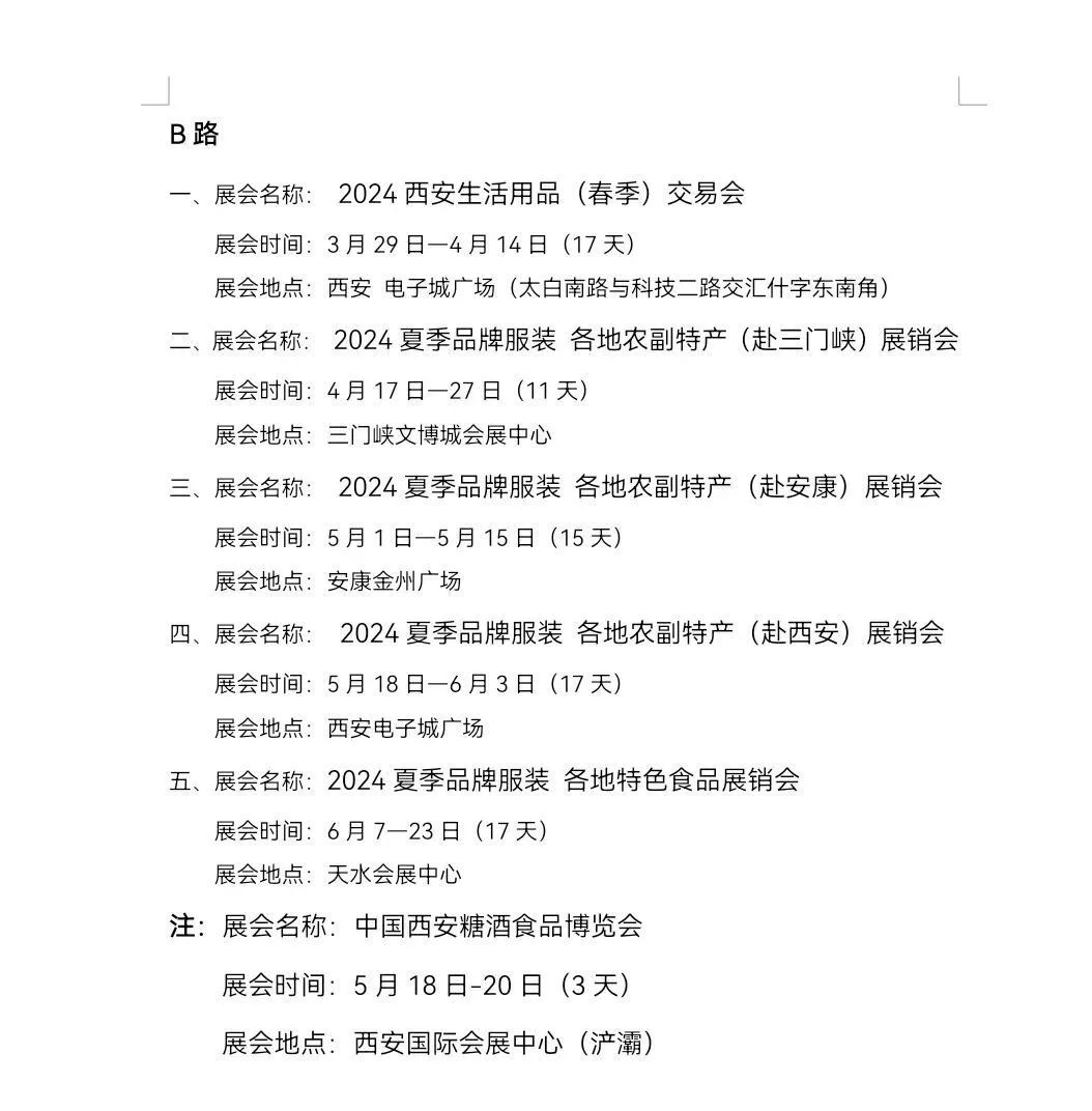 六、展会名称:2024夏季品牌服装 各地农副产品(赴西安)展销会