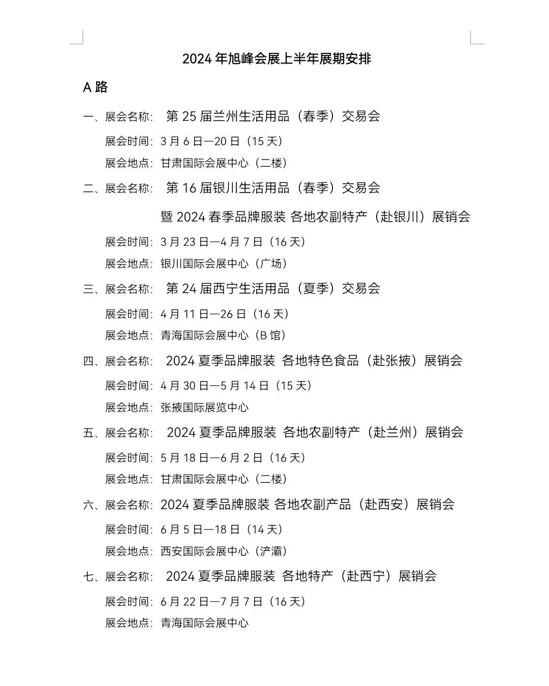 五、展会名称:2024夏季品牌服装 各地农副特产(赴兰州)展销会