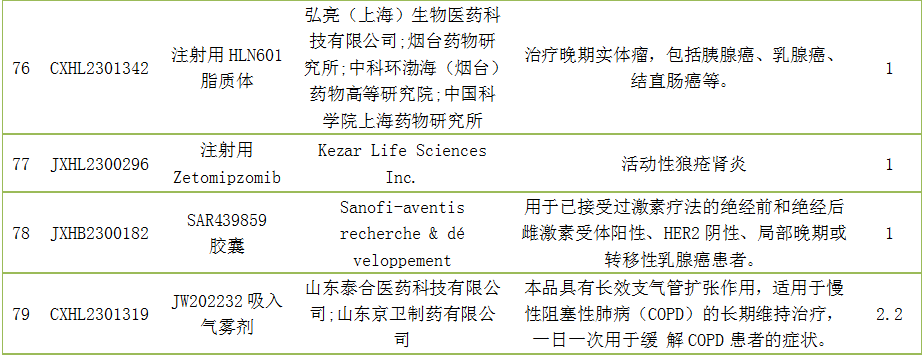 国内新药受理品种