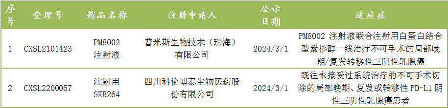截至2月29日,1类新药PM8002注射液纳入拟突破性治疗品种。