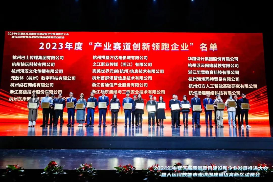 元数体(杭州)数字科技有限公司荣获2023年度“产业赛道创新领跑企业”奖项。