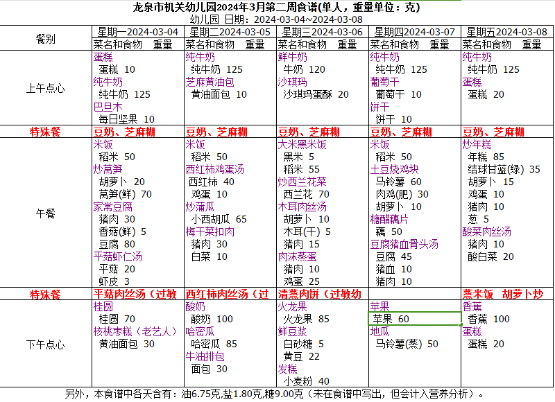 【机幼“食”光】龙机幼教育集团2024年2月第二周食谱