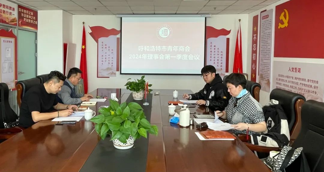 2024年3月1日,呼和浩特市青年商会召开了第一季度理事会,就商会章程修订、五四青年节活动方案、2024年工作安排等议题进行了深入探讨和决策。会议以线上线下相结合的方式举行,由秘书长张宁担任主持人。会长刘胜利、副会长王洪亮、阿崙到场参会,副会长李昱霖、覃金金、赵聪聪通过线上方式参与会议。