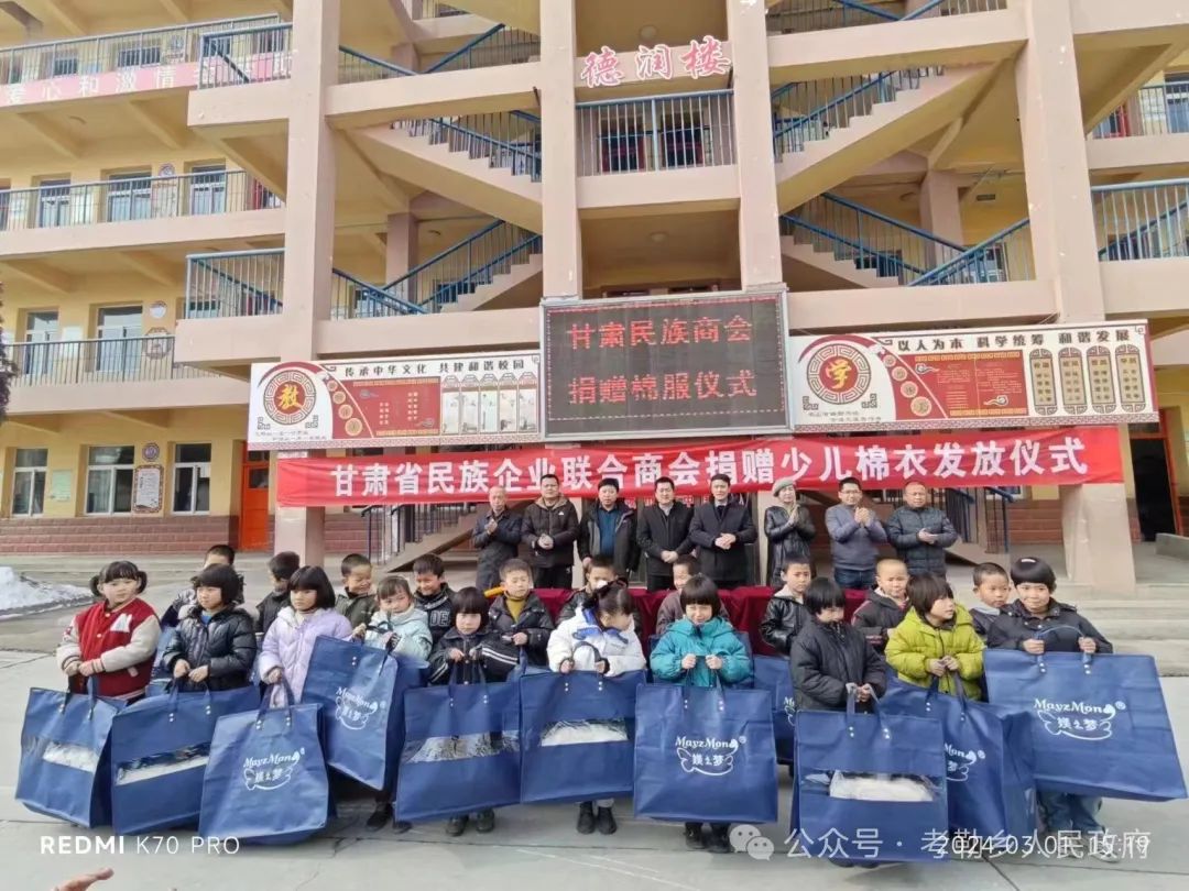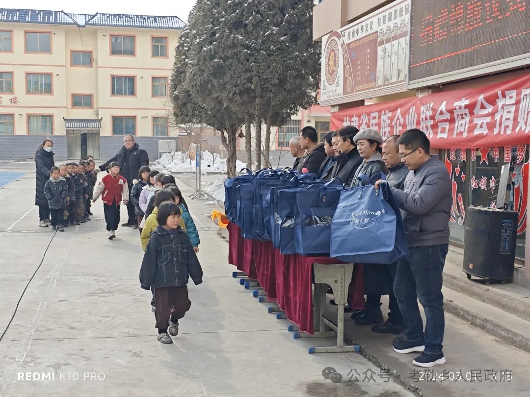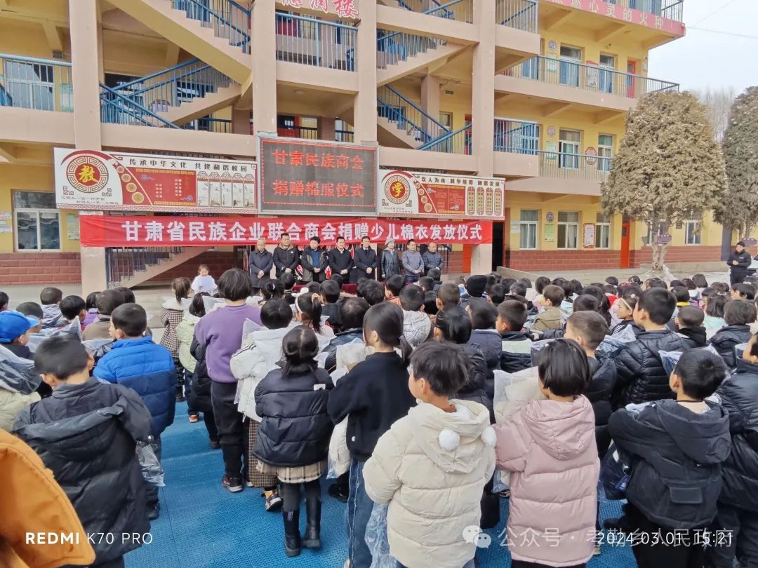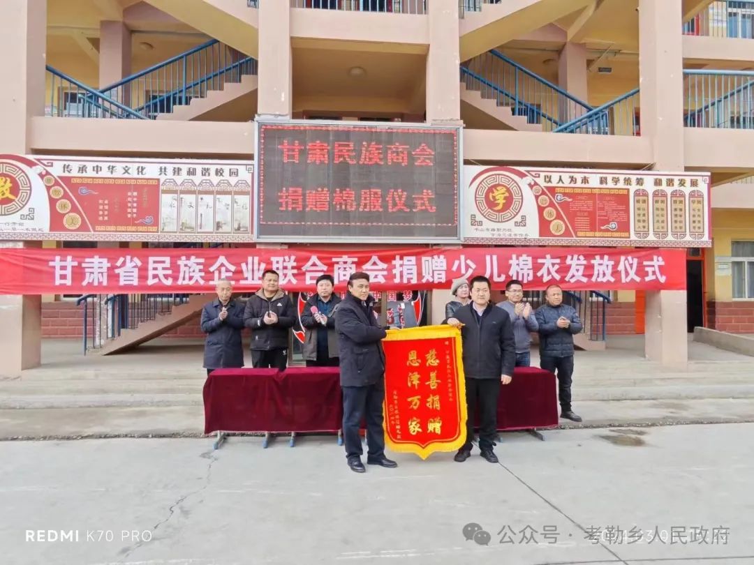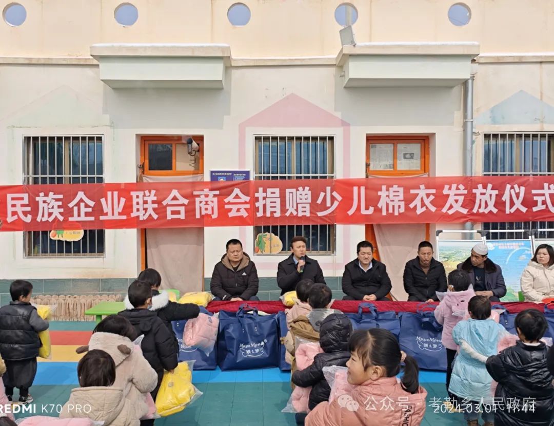 为了用实际行动在全社会营造关心教育、重视教育、支持教育的浓厚氛围,助力全乡教育事业蓬勃发展,经考勒乡党委、政府积极对接争取,甘肃省民族企业联合商会会长马有林先生大力支持、多方联系,共筹措资金13万元开展春季捐资助学爱心活动,向考勒乡捐赠少儿御寒棉衣500套。考勒乡党委、政府坚持教育优先发展战略,在气温骤降、春季返校的关键时刻,为激励莘莘学子克服严寒、返校入学,坚持抓早抓小,从幼儿女童这个关键群体入手,为考勒幼儿园、坡根幼儿园及三塬学校一年级同学发放御寒棉衣。3月1日,在考勒乡三塬学区举行少儿棉衣发放仪式,考勒乡分管教育工作人员、三塬学区班子成员、部分教师、乡村干部、家长代表参加。