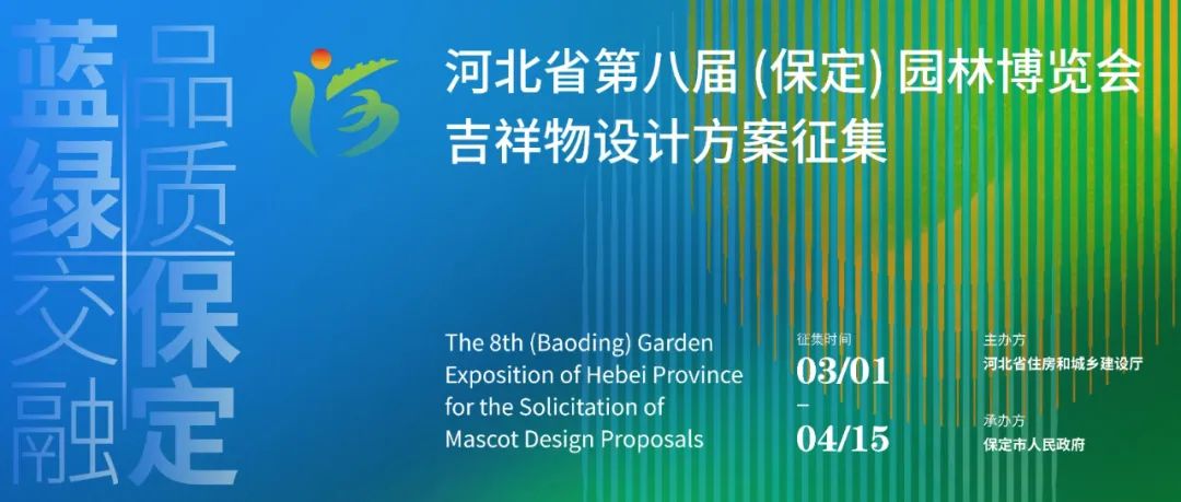 为⾼质量办好河北省第⼋届(保定)园林博览会,展现保定丰富的⽂化底蕴和城市精神,进⼀步扩⼤园博会宣传⼒度,提升省第⼋届园博会知名度、美誉度和影响⼒,现对河北省第⼋届(保定)园林博览会吉祥物设计⽅案进行公开征集,旨在甄选出⼀批具有“国际影响、中国元素、保定特⾊”的吉祥物作品⽅案,为河北省第⼋届(保定)园林博览会建设提供⾼质量、兼具前瞻性和创新性、可操作性的吉祥物作品形象。活动实施细则公告如下: