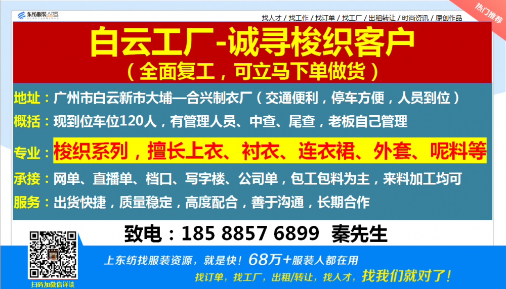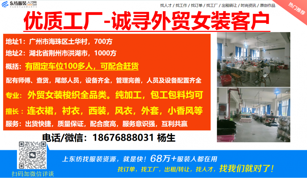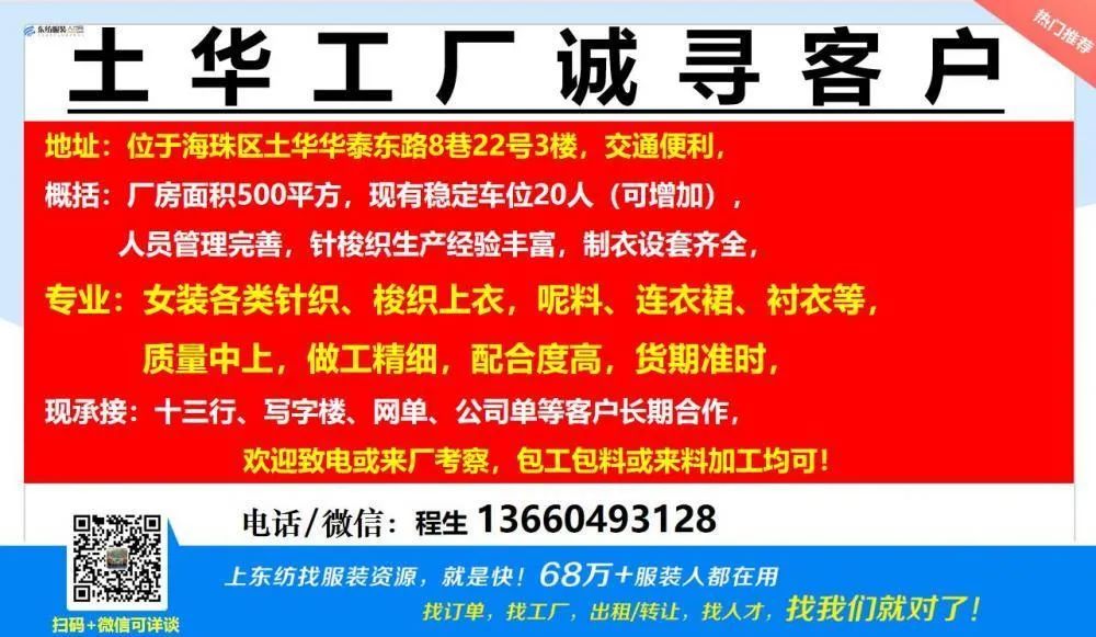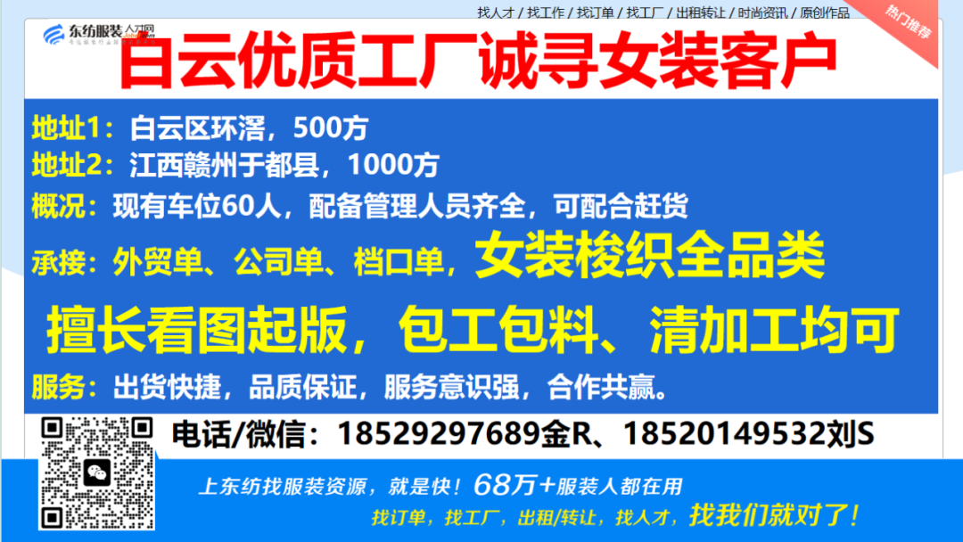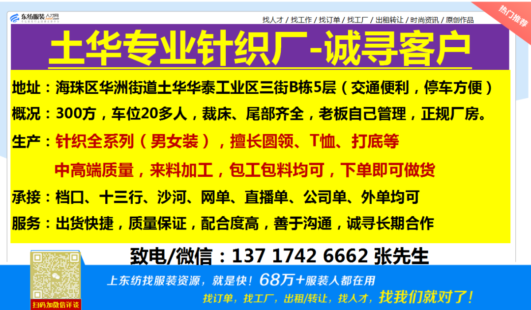 服装·诚寻客户丨3. 02号,找订单/找工厂/出租/转让信息