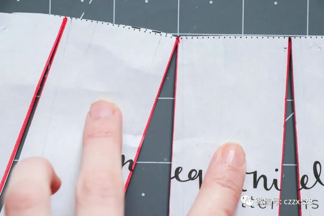 将每个部分展开并固定后,连接并弄平底部边缘。