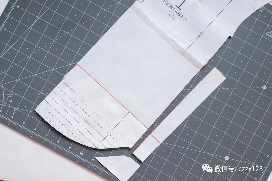 在前后片的纸样上,沿腰线处将其分别剪开。