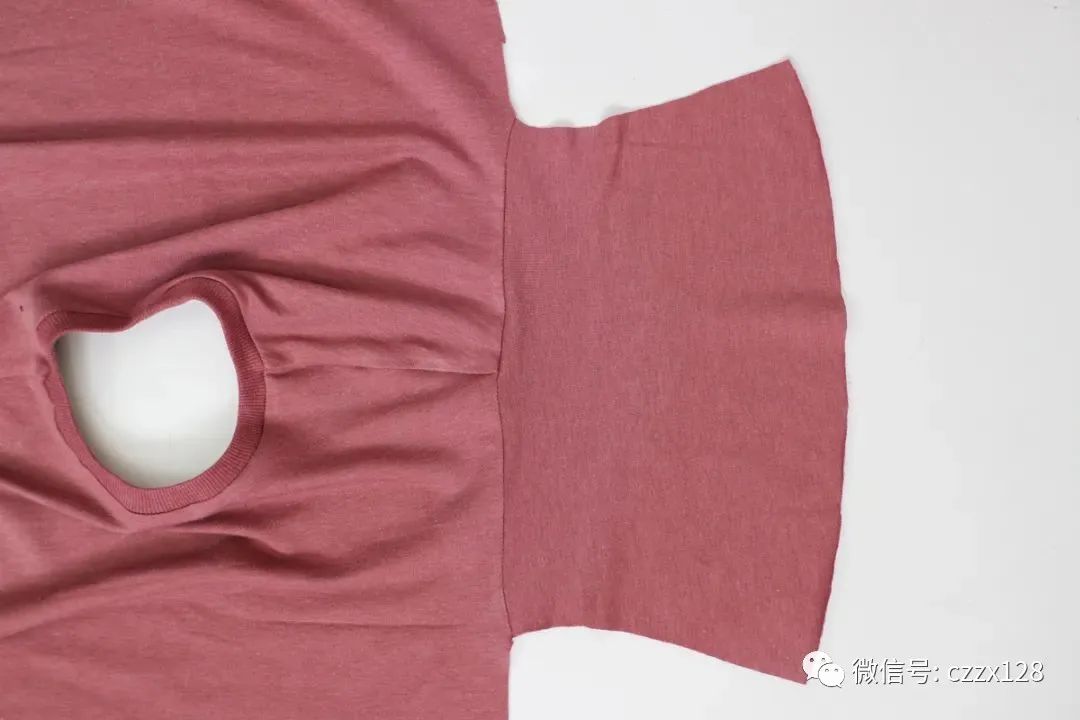 按照说明,先将肩缝和螺纹领口缝在一起。