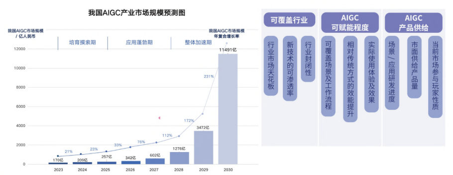 2028年起,我国AIGC产业市场规模将持续保持告诉增长,2030年市场规模超万亿