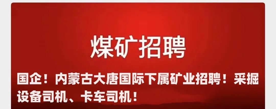 ➤点击查看:国企!不限户籍!内蒙古大唐国际下属矿业招聘!采掘设备司机、卡车司机!