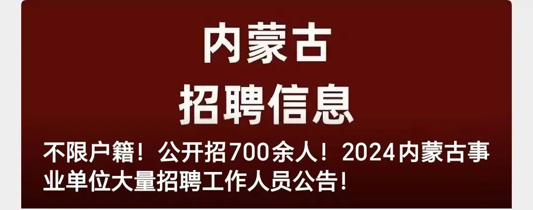 ➤点击查看:不限户籍!公开招700余人!2024内蒙古事业单位大量招聘工作人员公告!