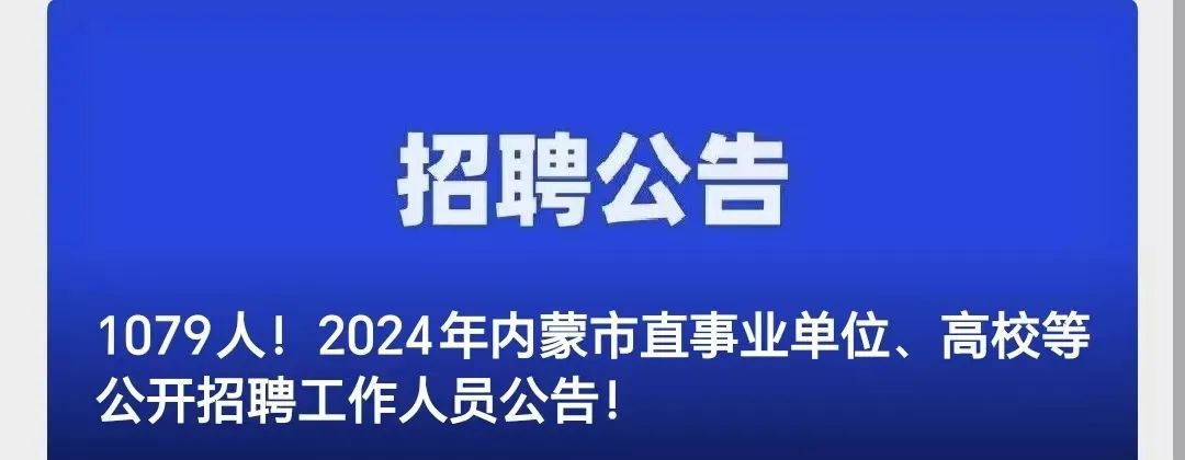 ➤点击查看:1079人!2024年内蒙市直事业单位、高校等公开招聘工作人员公告!