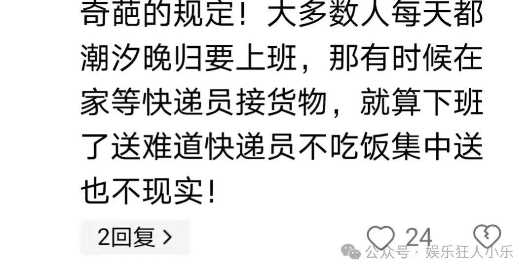 然而,新规引发了广泛讨论。有人支持继续使用驿站,认为取件更加灵活;而有人则认为送货上门才是快递服务的应有标准。双方各执一词,争论不休。