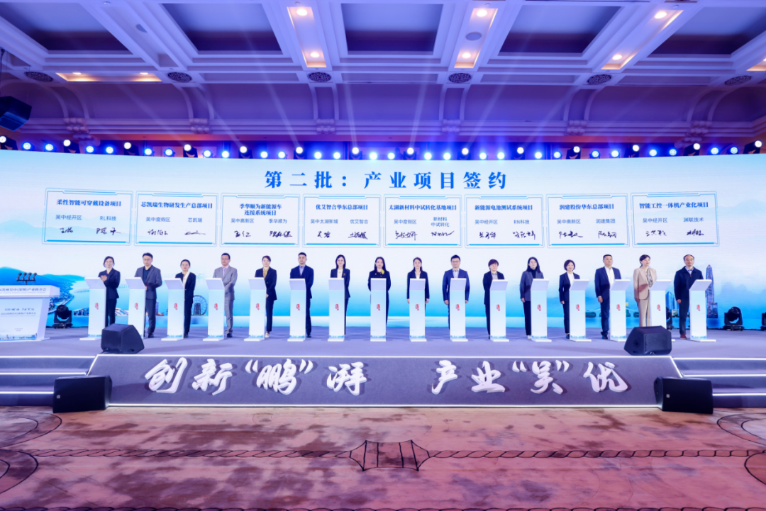 ▲新一代信息技术十大赋能行动发布苏州数字经济发展核心承载区载体发布▲重大载体揭牌:深圳湾实验室成果转化苏州分中心、苏州太湖关键技术转化研究院、中国(南方)知识产权运营中心苏州科技成果转化基地、华为(苏州)开发者创新中心揭牌。▲项目签约仪式:本次大会签约项目75个,总投资205.2亿元。