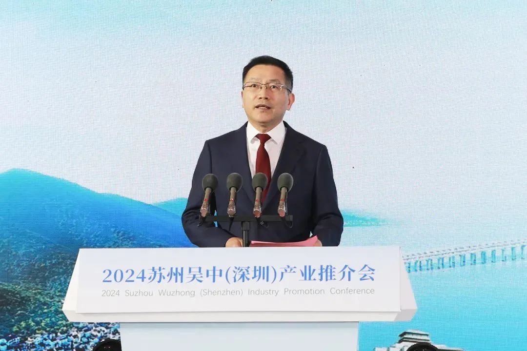 丁立新表示:“鹏城”万里,当太湖春风拂过岭南大地,这是最美的相遇。深圳山海包容、最具活力,吴中湖光山色、最具魅力,更是总书记“为太湖增添更多美丽色彩”殷殷嘱托的核心承载地。2023年吴中创成了国家级“绿水青山就是金山银山”实践创新基地,并蝉联全国市辖区GEP百强榜首。选择吴中,就是走进太湖山水、感受千年古韵、记住诗和远方。“鹏城”万里,用创新浪潮激荡发展活力,这是最燃的激情。吴中和深圳都浸润着兼容并包、多元融合的文化基因,镌刻着改革创新、开放共赢的奋斗印记。未来3年,吴中将推动全区GDP迈上2000亿元、规上工业总产值突破3000亿元,形成3个千亿级产业集群。选择吴中,就是把握发展机遇、激昂百舸争流、实现跨越赶超。