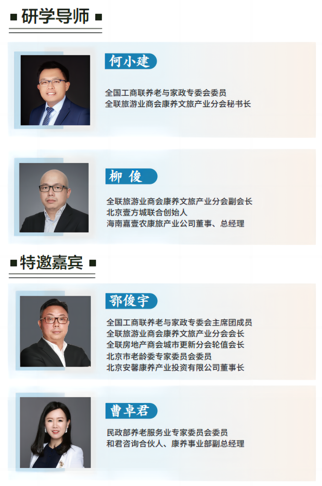鄂俊宇 全国工商联养老与家政专委会主席团成员、全联旅游业商会康养文旅产业分会会长、全联房地产商会城市更新分会轮值会长、北京市老龄委专家委员会委员、北京安馨康养产业投资有限公司董事长