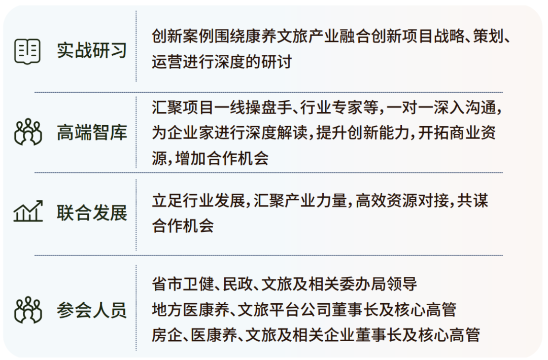 乡村振兴线上学习平台!邀请多位康养·文旅与乡村振兴领域国内外著名专家和具有代表性的康养·文旅与乡村振兴类项目操盘手,围绕康养·文旅产业与乡村振兴项目创建过程的顶层设计、盈利模式、策划规划、产业导入、运营及金融等核心问题展开,深入剖析具体操盘案例,为业界分享其经验与策略技巧,更具针对性与实操性,助推行业稳定有序发展。