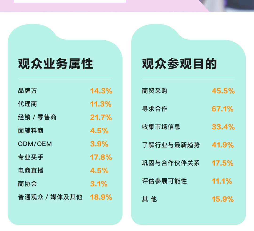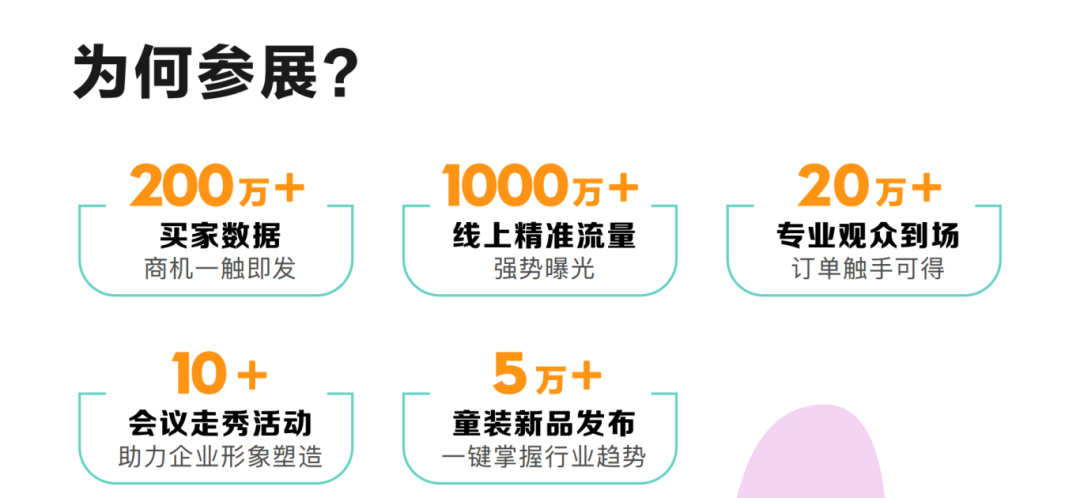 展会邀约200000+专业观众到场,包括:青少年装品牌方、代理/经销/零售商、ODM/OEM企业、面辅料商、专业买手、商超购物中心、直播/电商、行业商协会/产业集群地等。