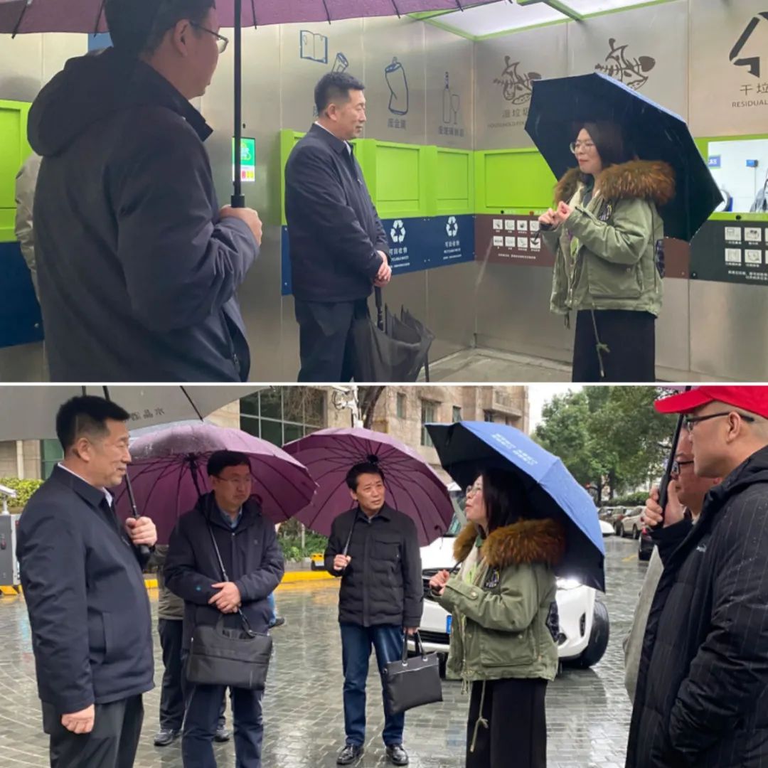 嘉兴路街道安丘居委区党总支书记雷国兴向考察团一行详细介绍了居民区在规范生活垃圾源头分类及投放方面的做法和经验,展示了智能垃圾厢房在降低垃圾末端处置的时间、促进资源的有效利用方面的优势。