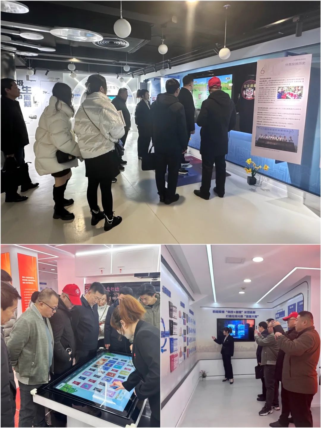 考察团来到虹口区生活垃圾分类科普馆,通过对场馆内各板块的体验,进一步了解虹口对辖区内四分类生活垃圾,在源头分类、中转驳运等方面的监管机制,并对虹口区垃圾分类工作的有序推进以及成效取得表示认可。