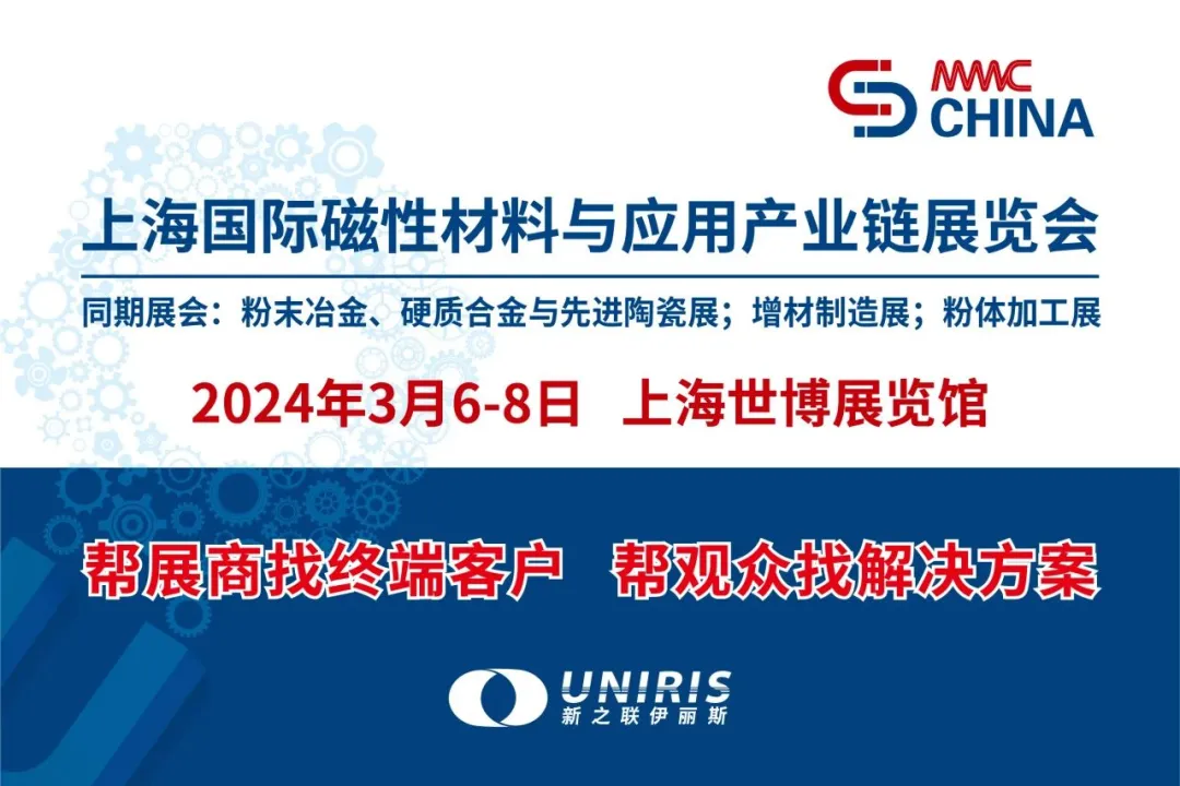 顺应行业发展与市场需求,新之联伊丽斯展览公司联合中国电子材料行业协会磁性材料分会,共同打造“上海国际磁性材料与应用产业链展览会(MMIC CHINA)”将于2024年3月6-8日在上海举办,将汇聚天通吉成、三环、骅骝、安泰、长汀金龙、萌达、悦安、东睦、东河机电、中科宁波磁材所、赫格纳斯、北矿、几磁等900多家国内外优秀企业和业界精英,分享世界领先的前沿技术、创新应用和解决方案,为上下游企业和行业用户搭建了一个技术交流与商贸合作的优质平台,助力磁材行业发展提质增速。