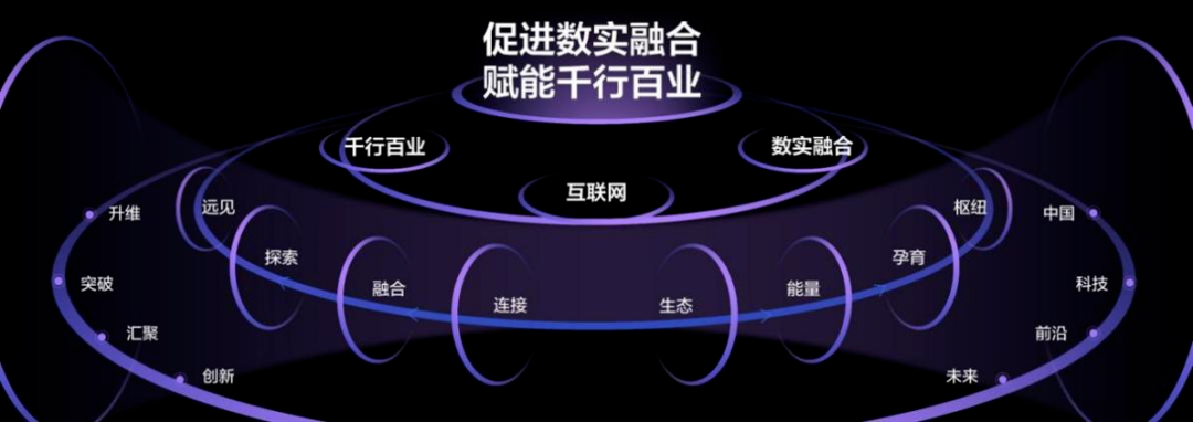 我们来解读数实融合能量球体。这个球体内外两层持续转动的态势,生动展现了数字经济与实体经济的紧密融合。这不仅仅是一种动态的表现,更是助力互联网产业发展所带来的无限动能的象征。通过设计呈现这一元素,使观者对数字经济与实体经济的关系有了更加直观而深刻的理解。