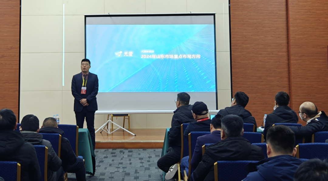 为了更高效地促进合作,3月1日下午光萤新能源于M层9会召开了“光萤-共赢 2024全国政策宣导暨户用业务新形态研讨会”,特邀山东省太阳能行业协会常务副会长兼秘书长——张晓斌对2024山东光伏市场的重点布局方向进行了解析。