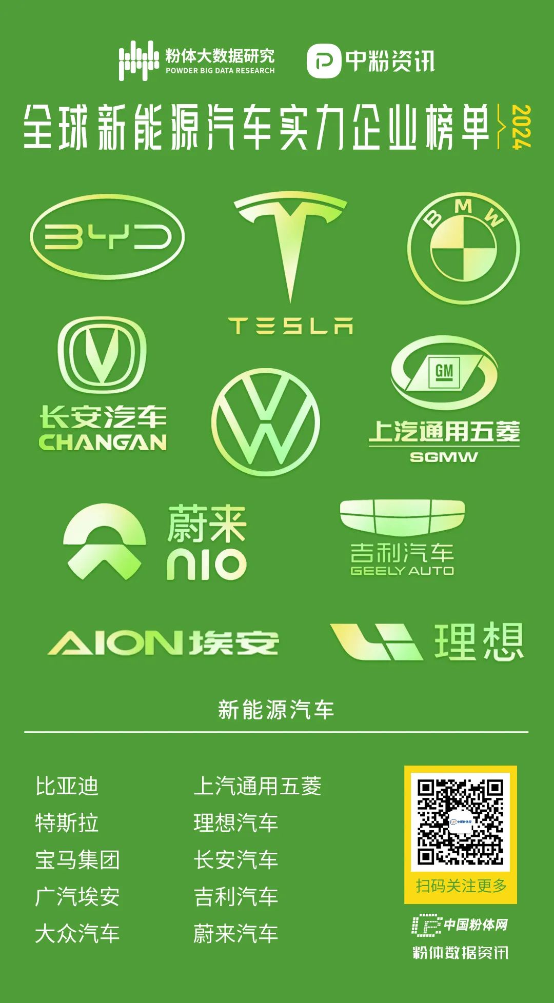 依据各车企官网及行业公开信息,参照品牌影响力、口碑、销量、技术等综合因素,目前全球排名前十的新能源汽车企业为比亚迪、特斯拉(Tesla)、宝马、广汽埃安、大众汽车、上汽通用五菱、理想汽车、长安汽车、吉利汽车、蔚来(Nio)。