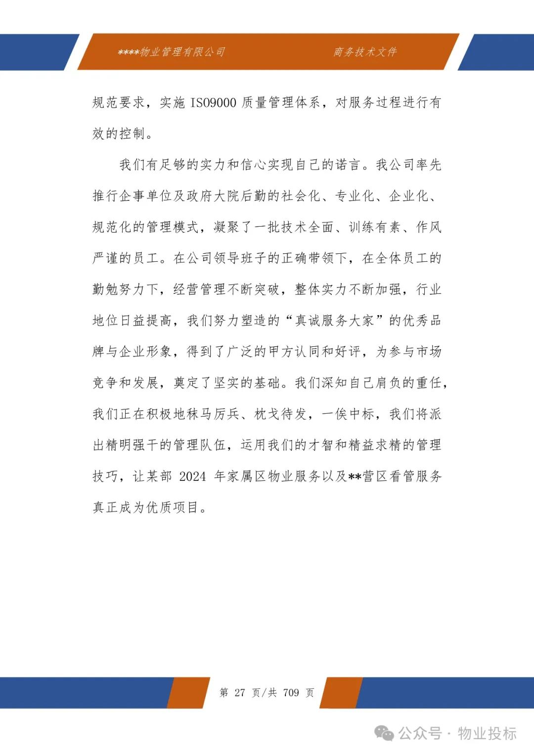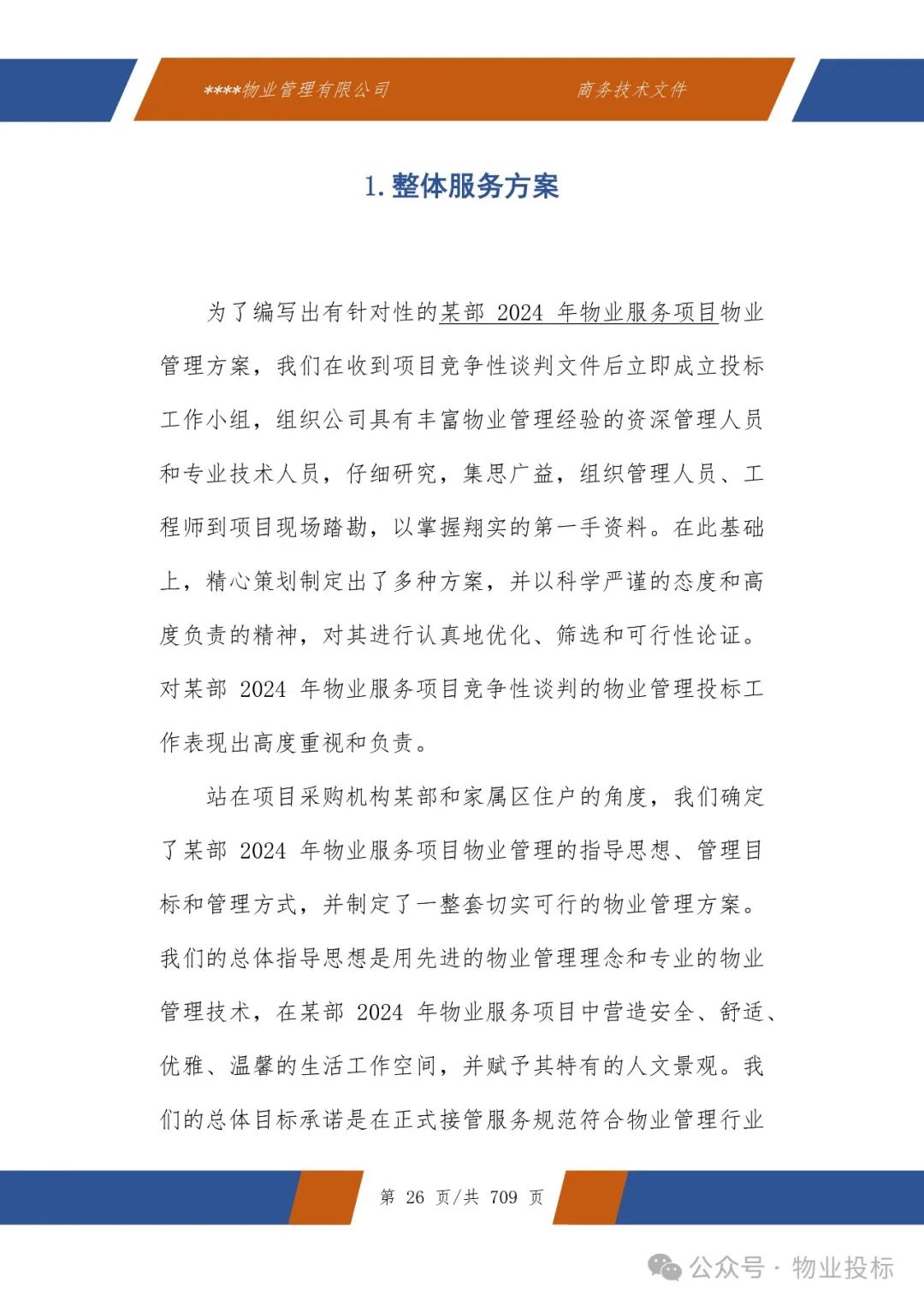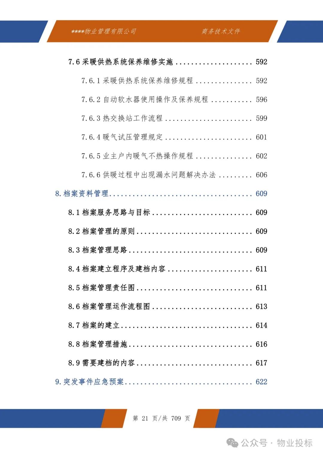 投标技术方案全文9章节:整体服务方案、服务质量监管、信息反馈机制、人员培训与激励机制、保洁管理、绿化养护、水电维修养护与管理、档案资料管理、突发事件应急预案等。