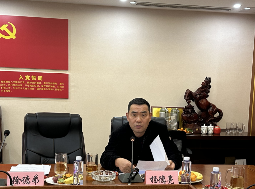 秘书长杨德亮发言,感谢大家在百忙之中参加今天的会议,圆满完成了会议各项议程。本次会议旨在总结2023年商会工作情况,探讨规划2024年商会工作思路与发展方向,确保商会工作起好头、迈好步、开好局。让我们在会长的正确领导下,携起手来,团结一心,抓住战略机遇,为推动行业高质量发展共同努力。最后,秘书长代表大家祝双岭商会全体会员新春快乐、身体健康、阖家幸福!