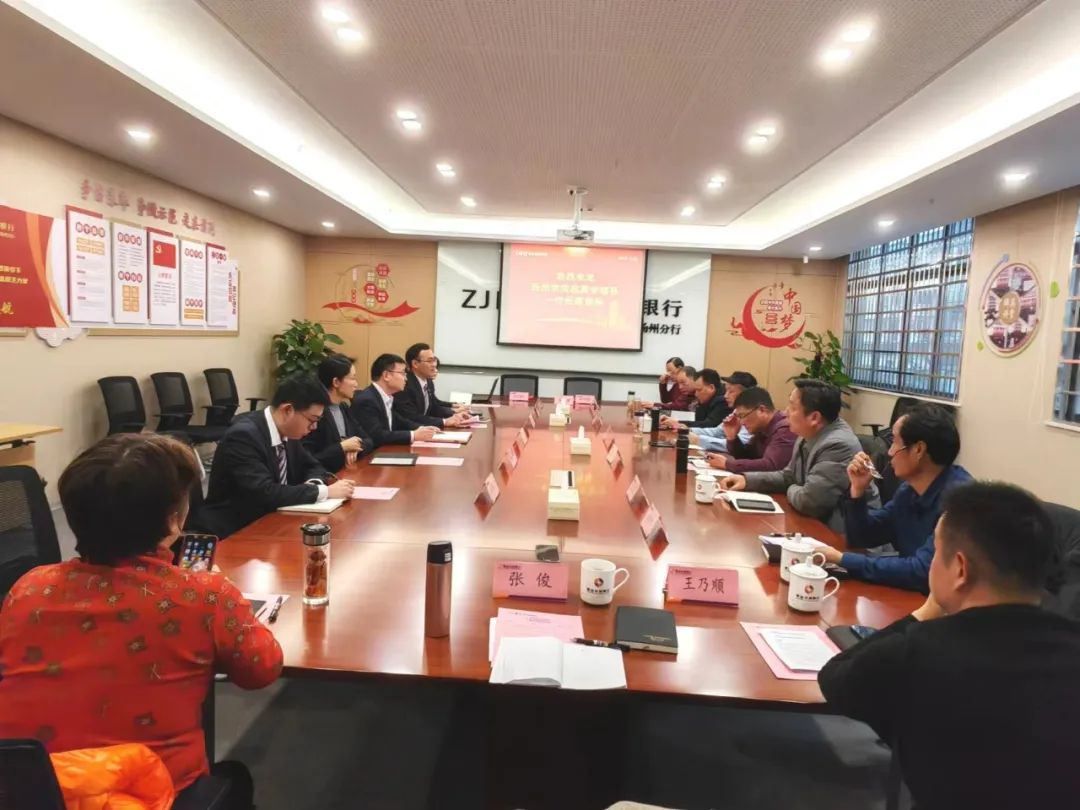 2月28日下午,扬城户外细雨蒙蒙,初春乍寒。为了拓宽会员企业的融资渠道,促进会员企业健康发展,实现合作共赢,扬州市宝应商会会长蔡锦平、监事长汪步云、秘书长王成忠、常务副会长陈俊洪、常务副会长陈默、副会长张学礼、副会长杨顺邦、副秘长王乃顺、副秘长徐桂兰等10名商会成员与紫金农商银行扬州分行领导共议合作事宜。