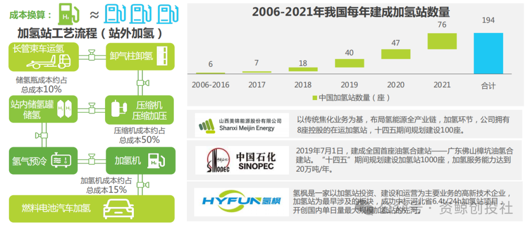 我国加氢站数量持续布局完善,数量全球居首。截至2022年底,我国已累计建成加氢站358座,加氢站数量位居全球首位,其中,在运加氢站245座,从地区分布来看,广东加氢站数量47座,位居全国首位,其中佛山市已累计建成运营35座,位居全国城市首位;山东省共建成27座,位居全国第二位。但建设主要受政策驱动,存在审批、成本等困境!