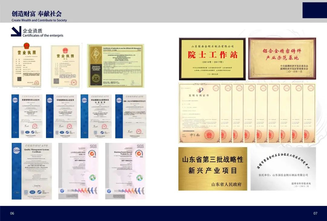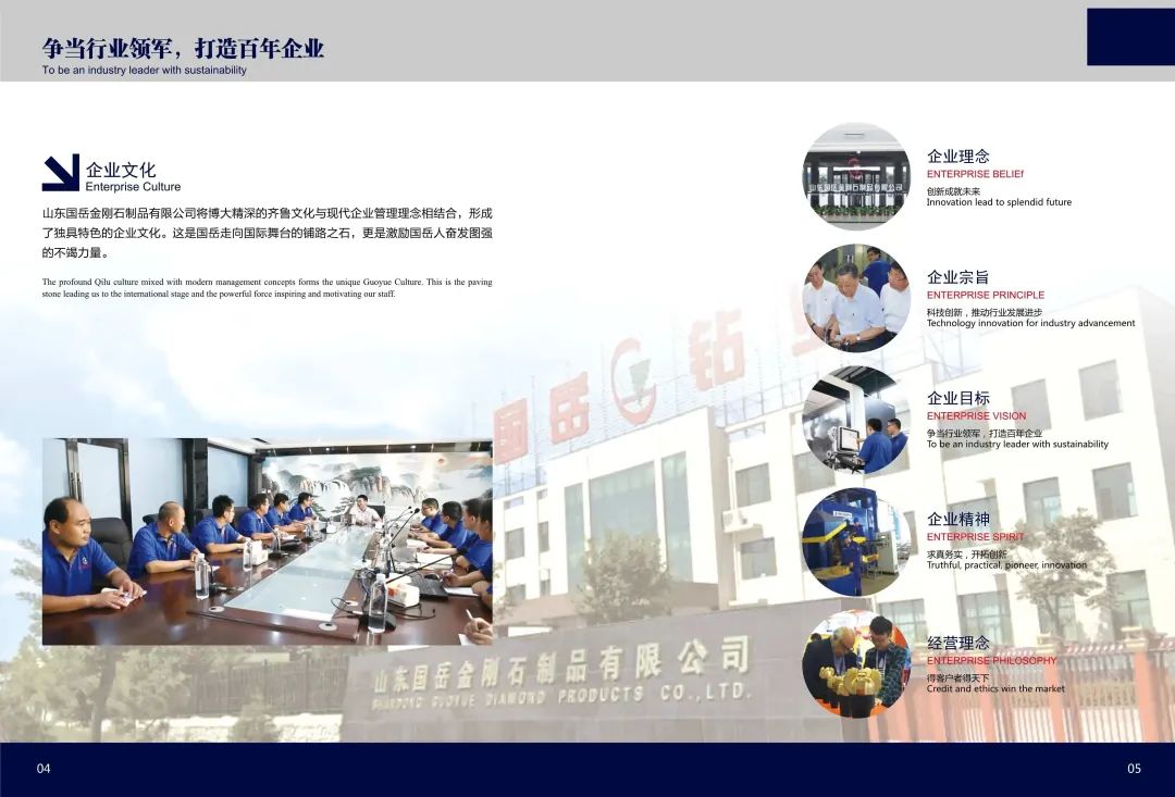 山东国岳金刚石制品有限公司位于山东淄川经济开发区,是一家集设计研发、生产和销售于一体的金刚石钻头及铝合金镁合金机械配件精密铸造和机加工企业。公司占地面积46800㎡,厂房26000㎡,办公及研发楼5600㎡,被山东省政府列为“第三批战略性新兴产业”和山东省“一企一技术”创新企业。