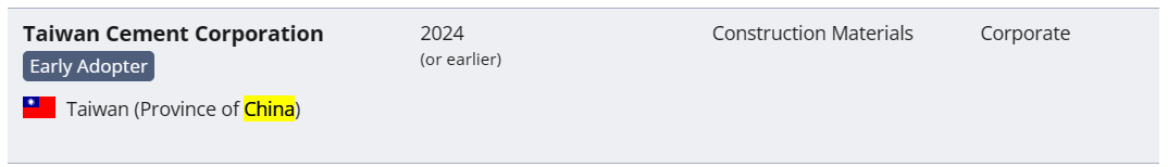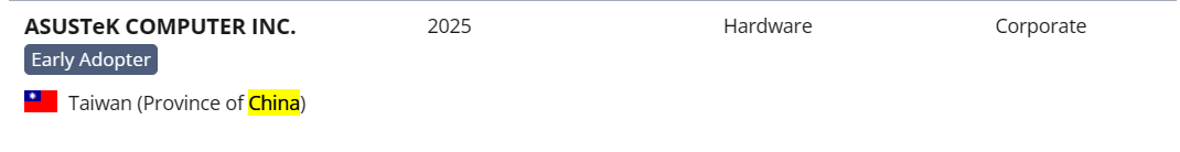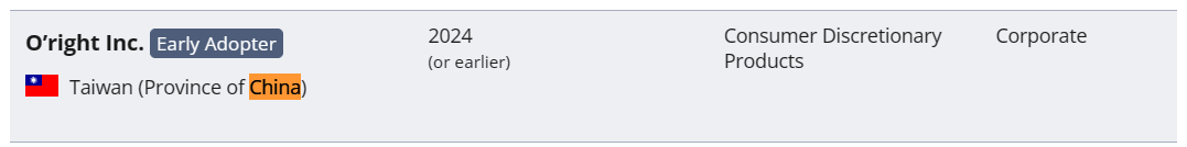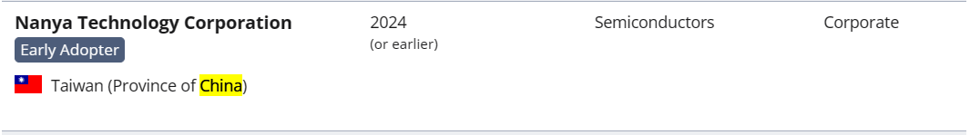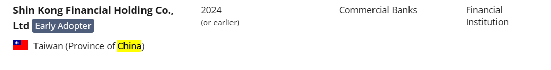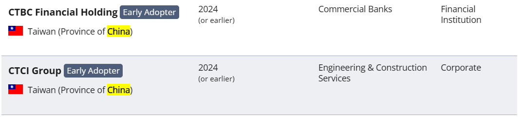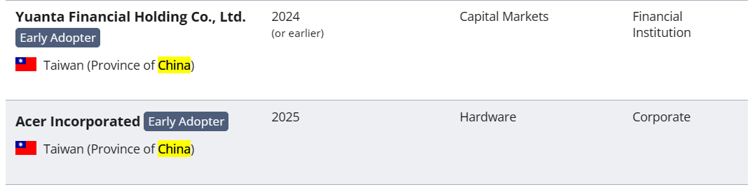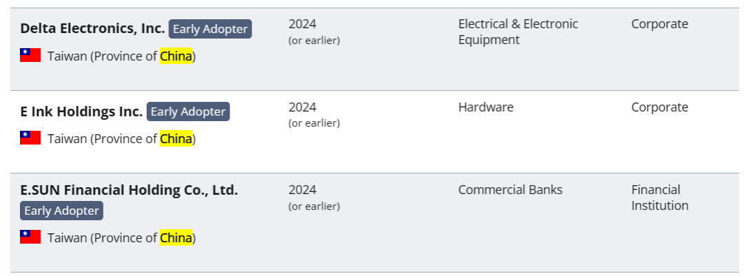 中国也有多家公司承诺采用该标准,但以港台公司为主,大陆仅有2家: