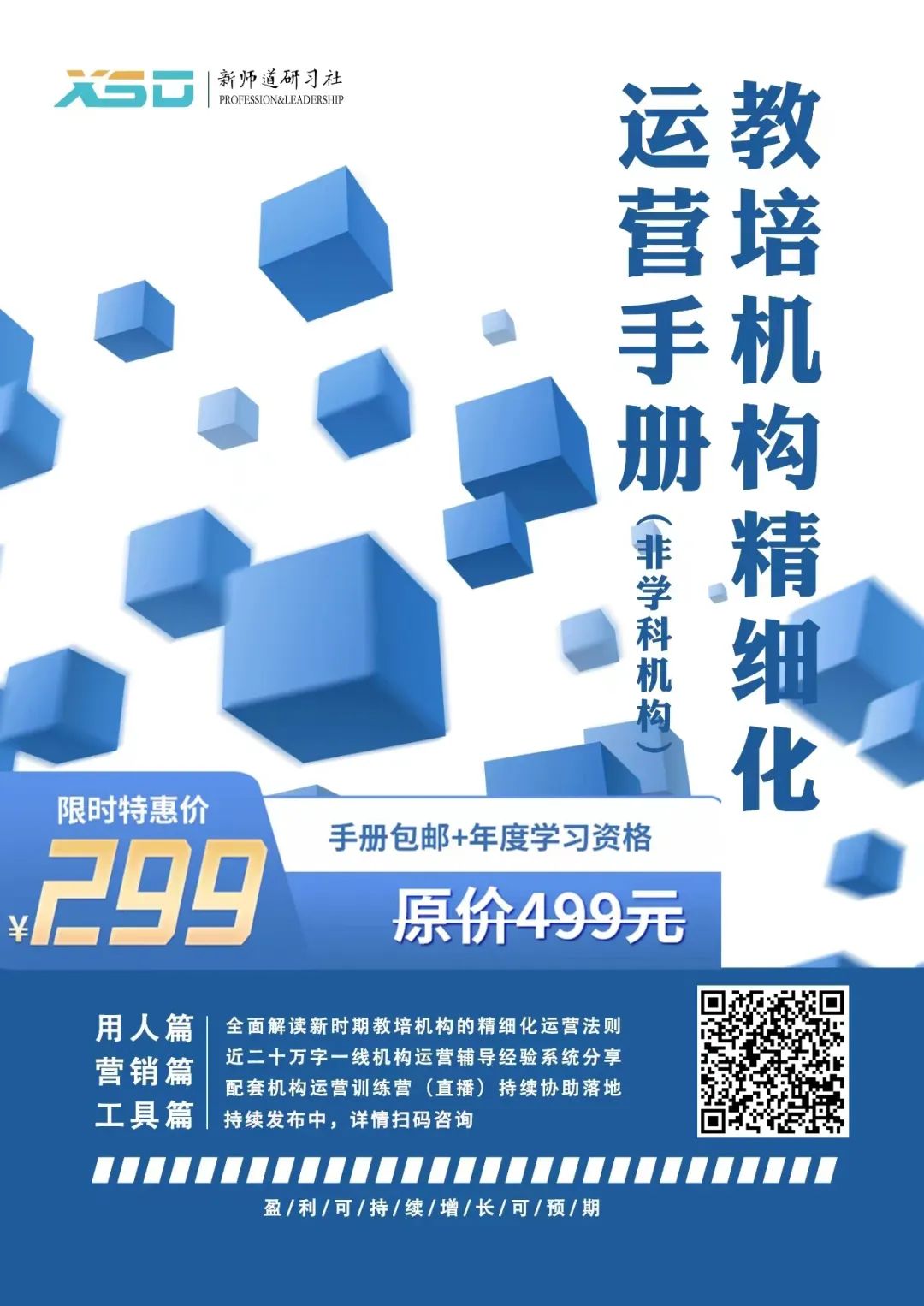 我是文杰老师,长期专注于非学科机构的运营辅导,助力教培机构搭建精细化运营体系。《教培机构精细化(非学科)运营手册》持续发布中,详情查阅下方海报