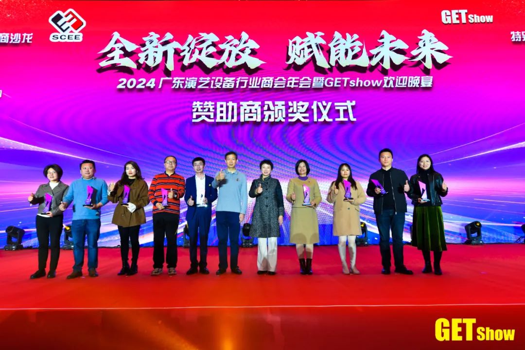 第二届“GETshow杯”青年舞台灯光设计师十佳作品(职业组)商会和GETshow的发展离不开一群热心企业的大力支持,今年的GETshow欢迎晚宴、开幕式、户外线阵及国际客商沙龙等活动都得到了会员、展商的踊跃赞助,大家纷纷发挥“众人拾柴火焰高”的精神,不仅提供声光电设备、系统及服务,还踊跃赞助现金以此表达对商会及GETshow的厚爱。在大家的见证下,商会隆重为他们颁发纪念奖座,感恩有您,携手同行,行稳致远!