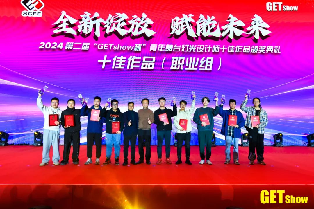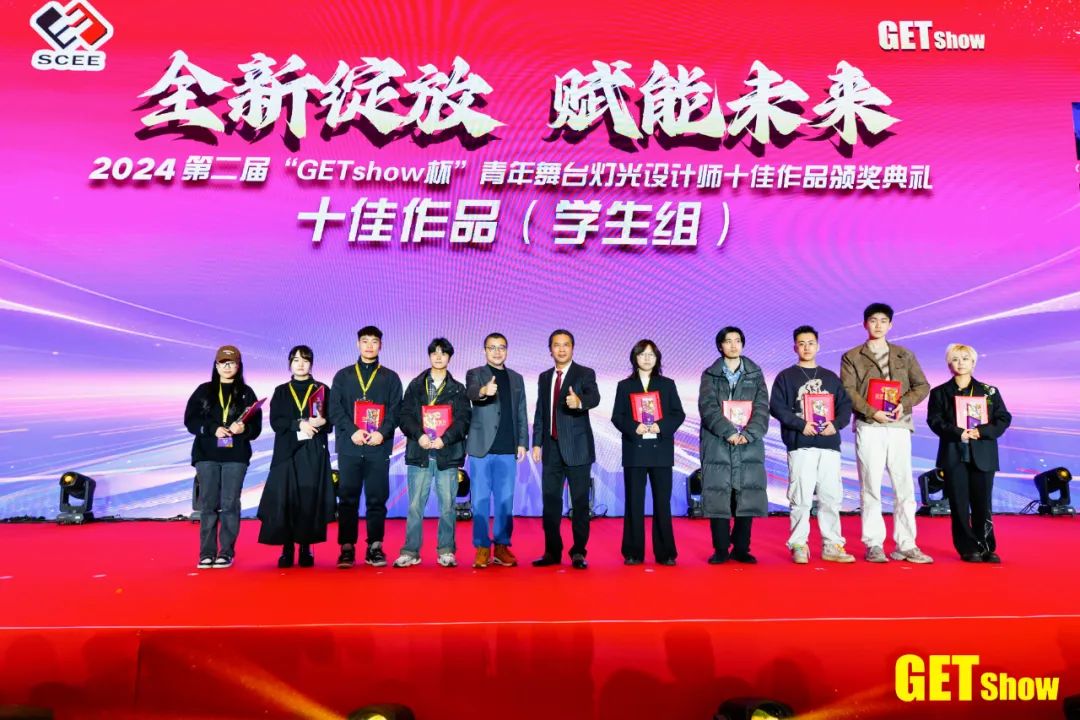 广州市文化广电旅游局党组成员总工程师李若岚指出,广州文化产业发展势头强劲,特别是在演唱会市场方面,广州大中型演出数量全国第一。作为全球演艺设备的重要生产基地,广州发挥着得天独厚的产业优势,广州市文旅局将一如既往地支持广东演艺设备行业商会的各项工作,推动演艺设备技术的迭代升级,创新文旅融合的业态模式,拓展产业提质升级的路径方法,持续为行业带来更多的发展机遇。中国演艺设备行业协会理事长朱新村分享了行业发展新特点,中国是演艺设备制造消费大国,越来越多世界重大项目使用中国专业灯光音响,再一次体现了我们演艺装备技术与艺术的融合。同时,从单纯产品到工程解决方案,我们行业正不断走向全球,我认为行业发展趋势向好,广大企业大有可为。预祝2024年GETshow圆满成功。培育行业新生代人才,扶持青年设计师发展,广东演艺设备行业商会主办第二届“GETshow杯”青年舞台灯光设计师十佳作品评选活动。历时3个月,吸引全国100+青年设计师踊跃投稿,创意十足,精彩不断。活动得到了中国舞台美术学会、广东省舞台美术研究会、广东省声像灯光科技促进会、中央戏剧学院、上海戏剧学院、中国戏曲学院、北京舞蹈学院、广州美术学院和广东舞蹈戏剧职业学院的大力支持,以“公平、公正、公开”的方式评选出十佳作品(学生组)、十佳作品(职业组)等奖项。
