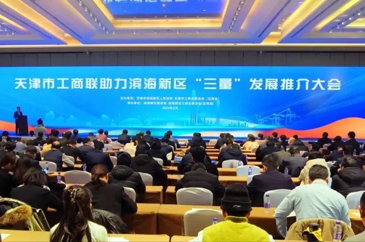 2023年2月23日,滨海新区区委、区政府和天津市工商联共同主办的市工商联助力滨海新区“三量”发展推介大会在滨海新区经开区同步举行。市委统战部副部长、市工商联党组书记郝树民出席,市工商联主席、市总商会会长娄杰,区委副书记、区长单泽峰致辞,市工商联领导苑庆彬、于为忠、张晓辉、时锦霞和区领导李龙、韩昱、董丽敏参加,区委常委、副区长罗平推介新区投资环境和优质资产,副区长陈华荣主持。