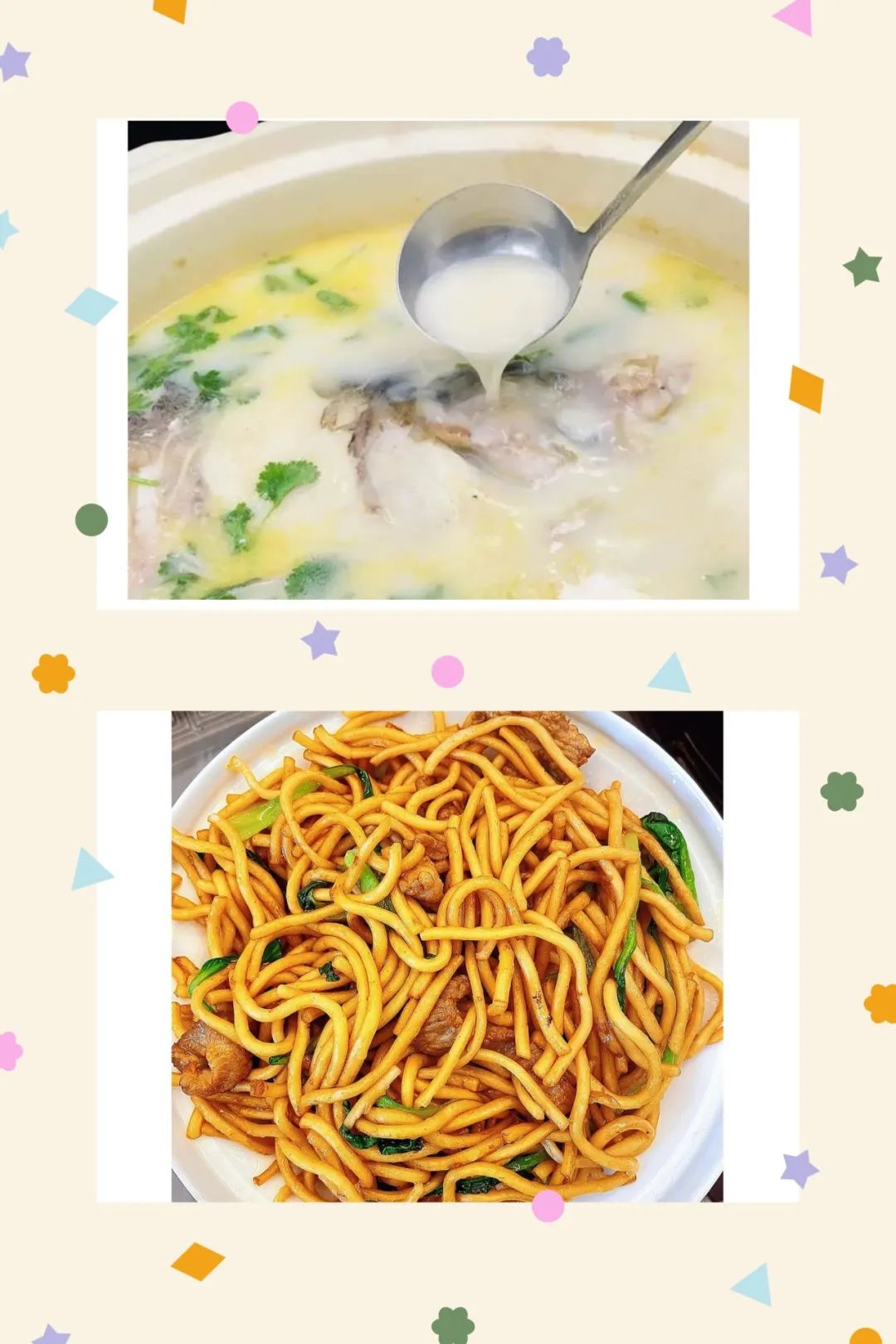 营养晚餐:青菜肉丝炒面 鱼头豆腐汤