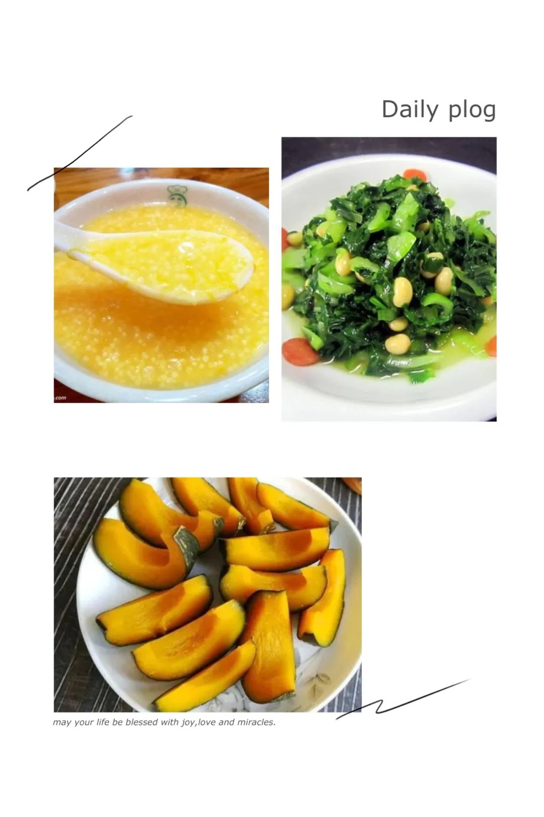 能量早餐:小米粥 蒸贝贝南瓜 豆豆炒青菜