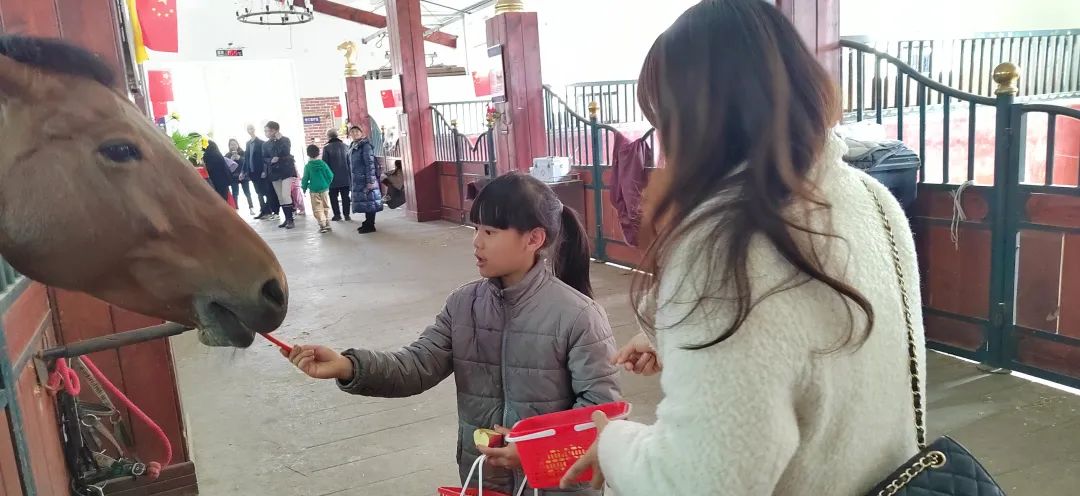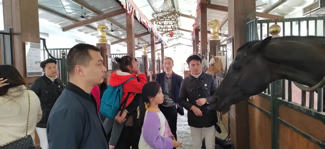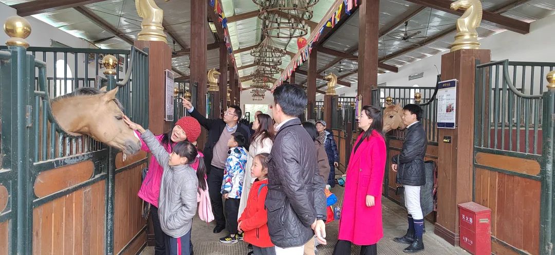 在马房里,陈平总监向大家介绍了马会的马匹,及马匹的生活习性,,大家通过抚摸、投喂等与马匹进行了友好互动。