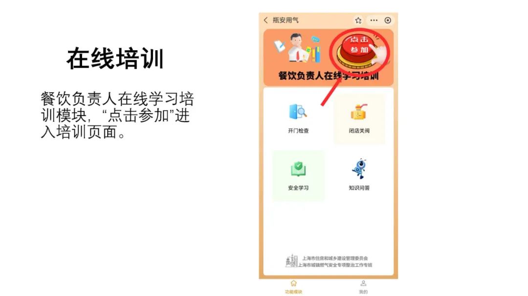 为全面提升城镇燃气领域企业“第一责任人”安全风险防控意识和安全管理能力,上海市开展使用燃气的餐饮企业落实安全生产主体责任培训工作,请我区使用燃气的餐饮企业主动参加线上培训工作。