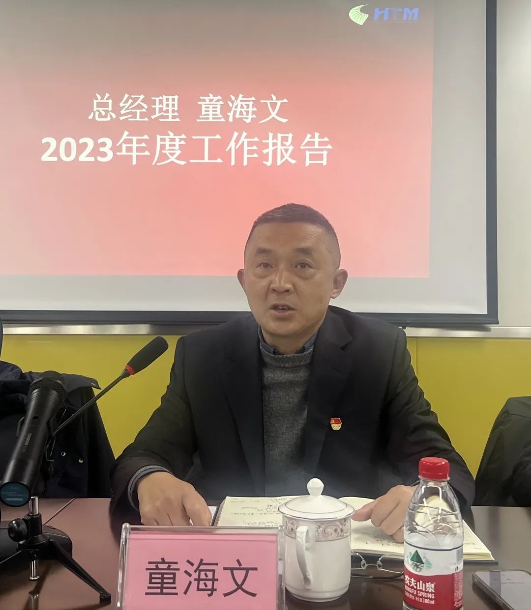 会议最后,公司党支部书记、总经理童海文作重要讲话。他对2023年重点工作成果做了多角度、全方位的复盘,他首先就公司较为圆满的完成了2023年度各项经营指标,并在利润总额、回收货款两项最为关键的经营数据上创造历史新高,向全体员工表示祝贺,对大家一年来的辛勤工作、努力付出表示充分的肯定。并对2024年转型升级、能力提升提出了高站位、多层次的要求: