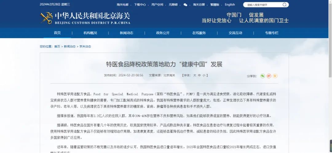运用关税杠杆聚焦民生关切问题,是我国关税税率调整的重要目标之一。经过海关等部门的努力,《2024年关税调整方案》对“特殊医学用途配方食品”扩大降税范围。此次调整,是在原有“0至36月龄的特殊医学用途婴幼儿配方食品”关税优惠为零的基础上,将“适用3岁以上人群(包括孕产妇、老年人等)的特医食品”关税也优惠为零,关税税负降低5%-12%。