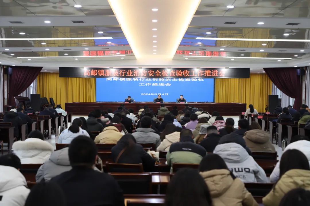 为深入贯彻落实习近平总书记关于安全生产重要论述和对江苏工作重要指示精神,进一步加强服装行业监管,守稳守牢安全生产底线,打造“安全是最大福祉”的社会氛围。今天下午,高邮镇召开服装行业消防安全检查验收专项会议。
