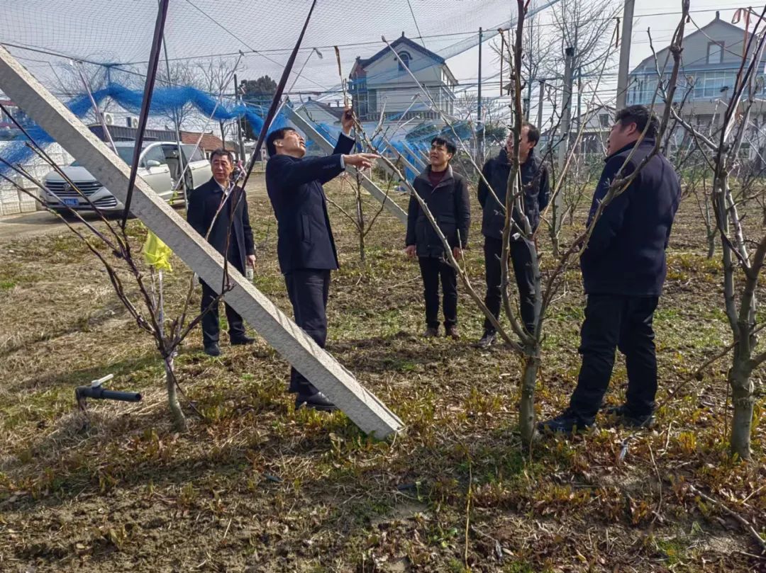 江苏省农业农村厅农技推广总站果树专家陆爱华会长,省农科院农产(果)品加工专家李春阳博导,省农科院果树专家吴伟民教授一行,来我镇农投公司梨园考察指导,