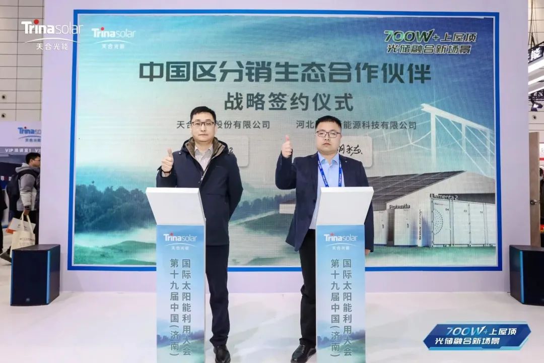 本次展会上天合光能中国区分销华北区域负责人王超、浙江特区负责人邵智华、华东区域负责人许成巧分别与8家客户共同完成2024天合光能中国区分销储能生态合作伙伴战略签约。天合光能将与各位战略合作伙伴,充分发挥各方面优势,进一步深化储能项目建设、技术创新合作层次、加强交流沟通、拓展合作空间,共同开创更多领域高质量合作的新局面。