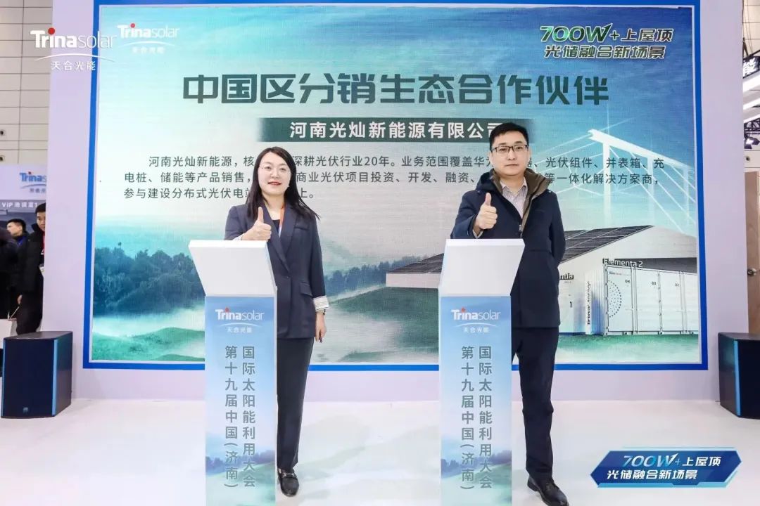 2月29日,第十九届中国(济南)国际太阳能利用大会暨第三届中国(山东)新能源与储能应用博览会拉开帷幕。展会现场,天合光能携210+N至尊组件、天合储能工商储&大储、柔性系统解决方案、天策机器人等多款最新产品及全系多场景解决方案亮相四号馆DT07展位,并荣获“分布式能源优秀风采奖”。天合光能展台人气高涨,现场观众络绎不绝,多款最新产品卓越性能和风采吸引现场客户频频驻足。