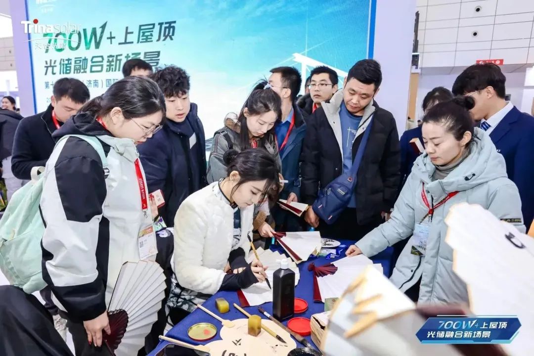 除了精彩的议程,天合光能现场还准备了多轮惊喜礼品抽奖环节、特色茶饮以及新年定制书法吉扇活动,为观众提供了丰富多彩的观展体验。